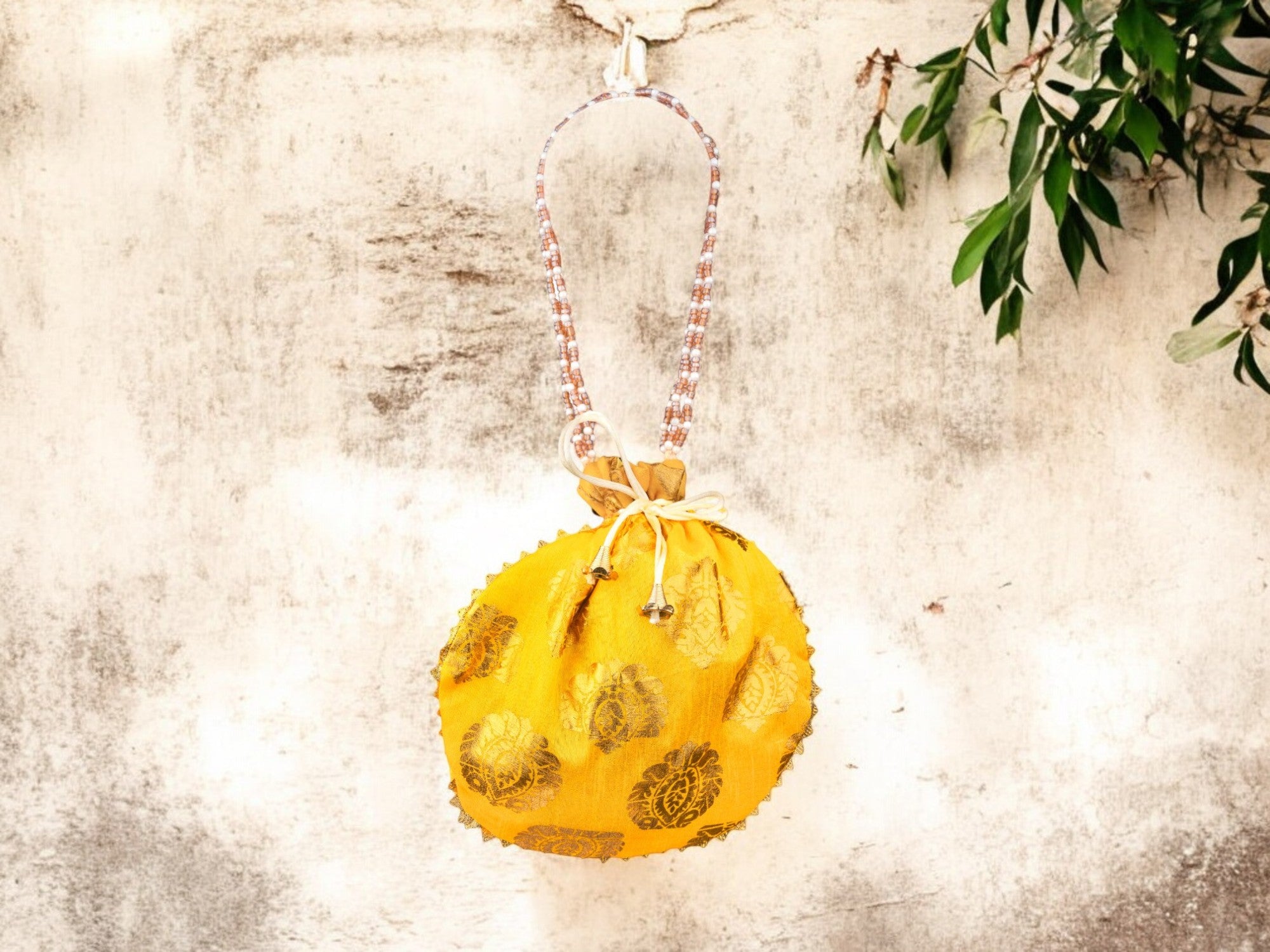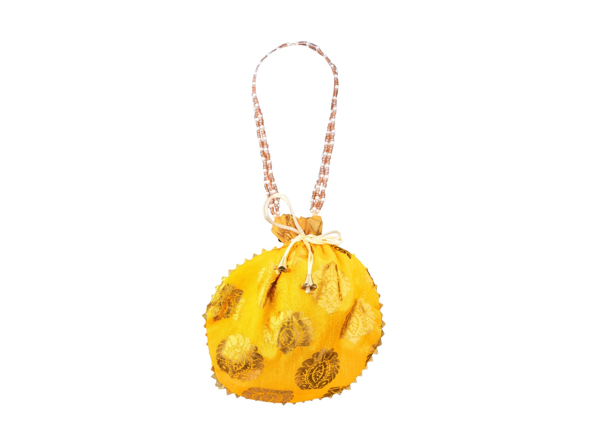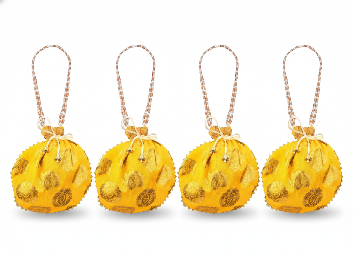 Bail Round Potli Bag with Pearl Beaded Handle Yellow- Pack of 4