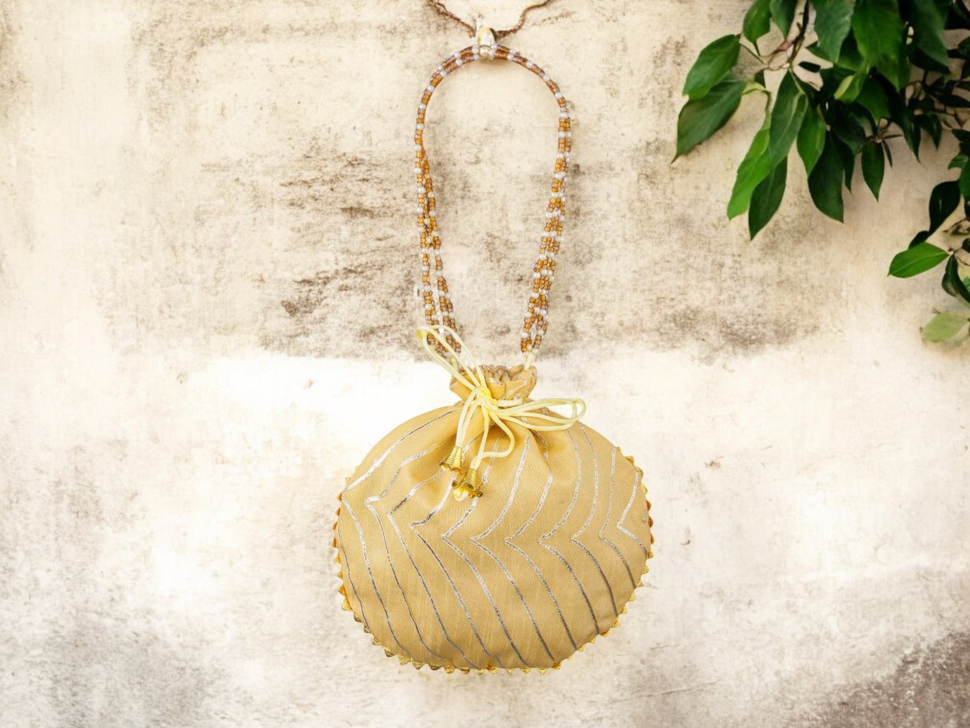 • Design: Round potli with Golden triangular edging