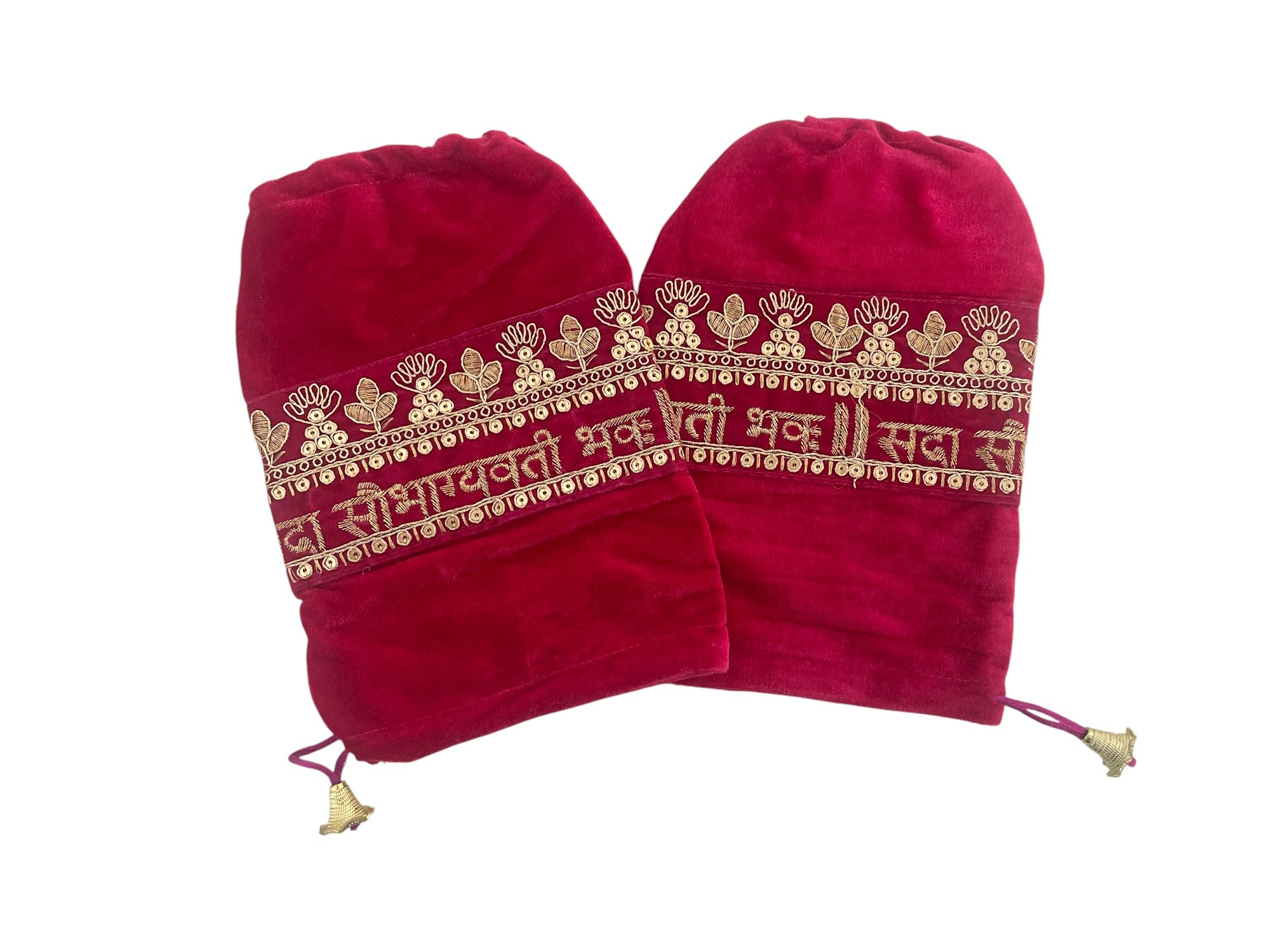Add a touch of tradition and elegance to your bridal essentials with this beautifully crafted Chooda Cover. Made in Pink red velvet fabric, this cover features intricate golden zari embroidery with auspicious motifs, making it perfect for preserving and adorning your bridal chooda in style.