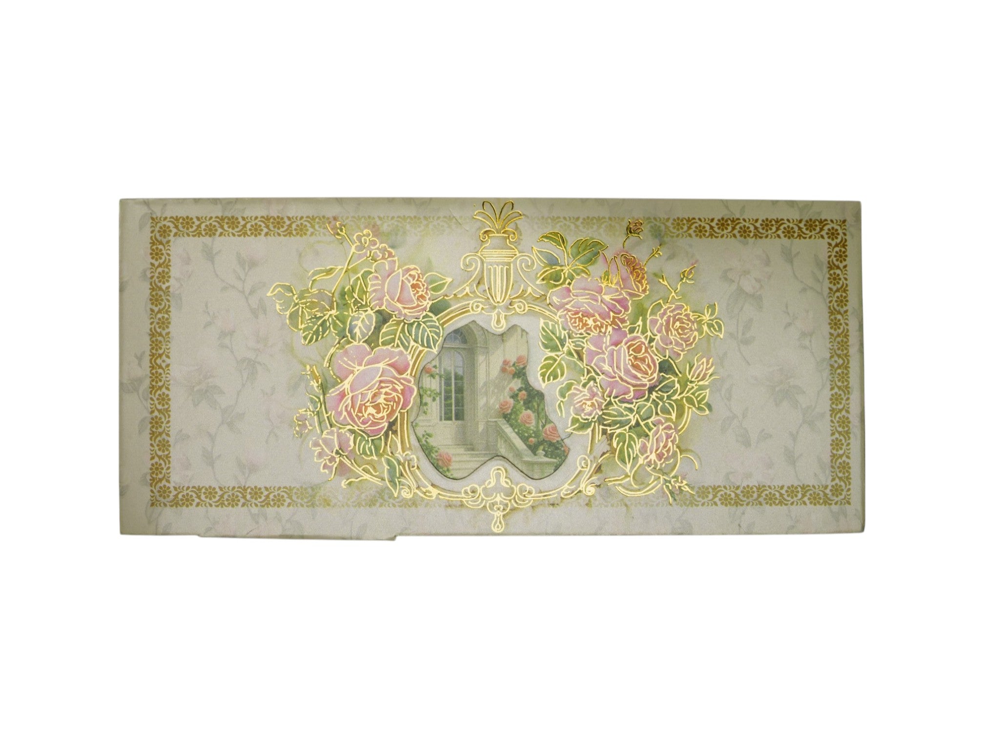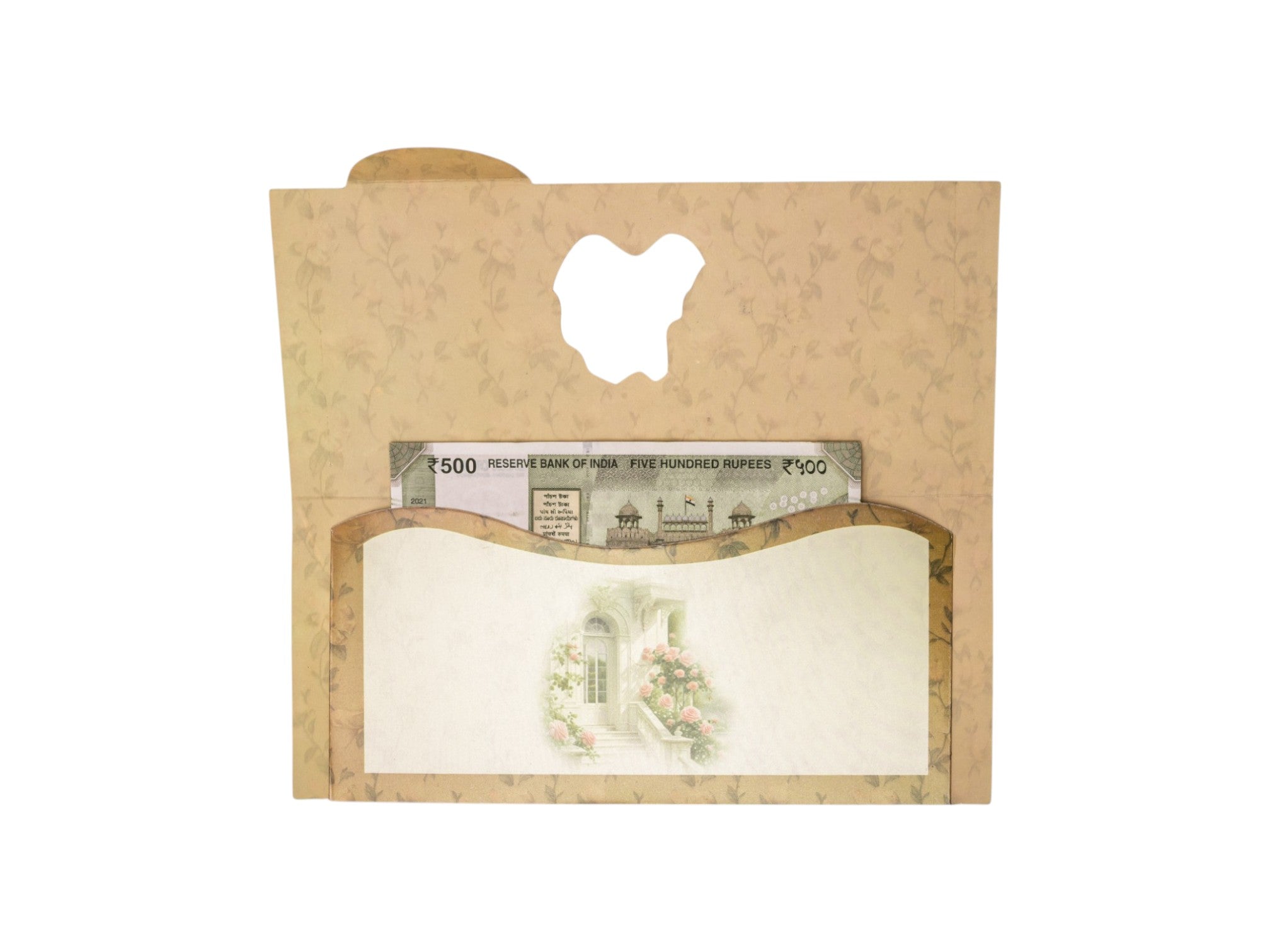 Bring an old-world Victorian charm to your gifting with this ivory Shagun envelope. Crafted on shimmer finish paper with embossed florals and gold foil detailing, it features a pink rose frame surrounding a vintage glasshouse scene. A symbol of abundance, love, and fresh beginnings, perfect for weddings, anniversaries, and festive occasions.
