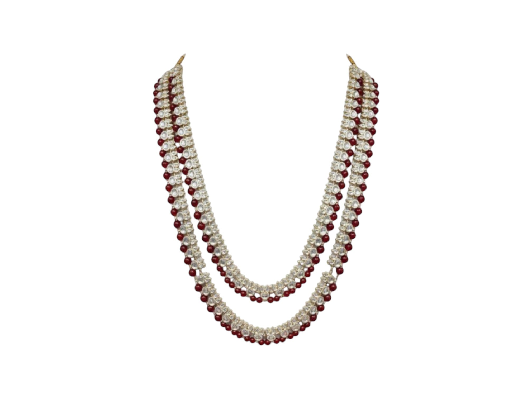 Add a touch of regal elegance to your wedding look with this stunning triple-layer groom mala, crafted to perfection for today’s modern yet traditional groom. Designed with deep red premium beads and high-quality kundan stones, this mala brings out a classic royal charm—perfect for haldi, mehendi, wedding day, or reception.
