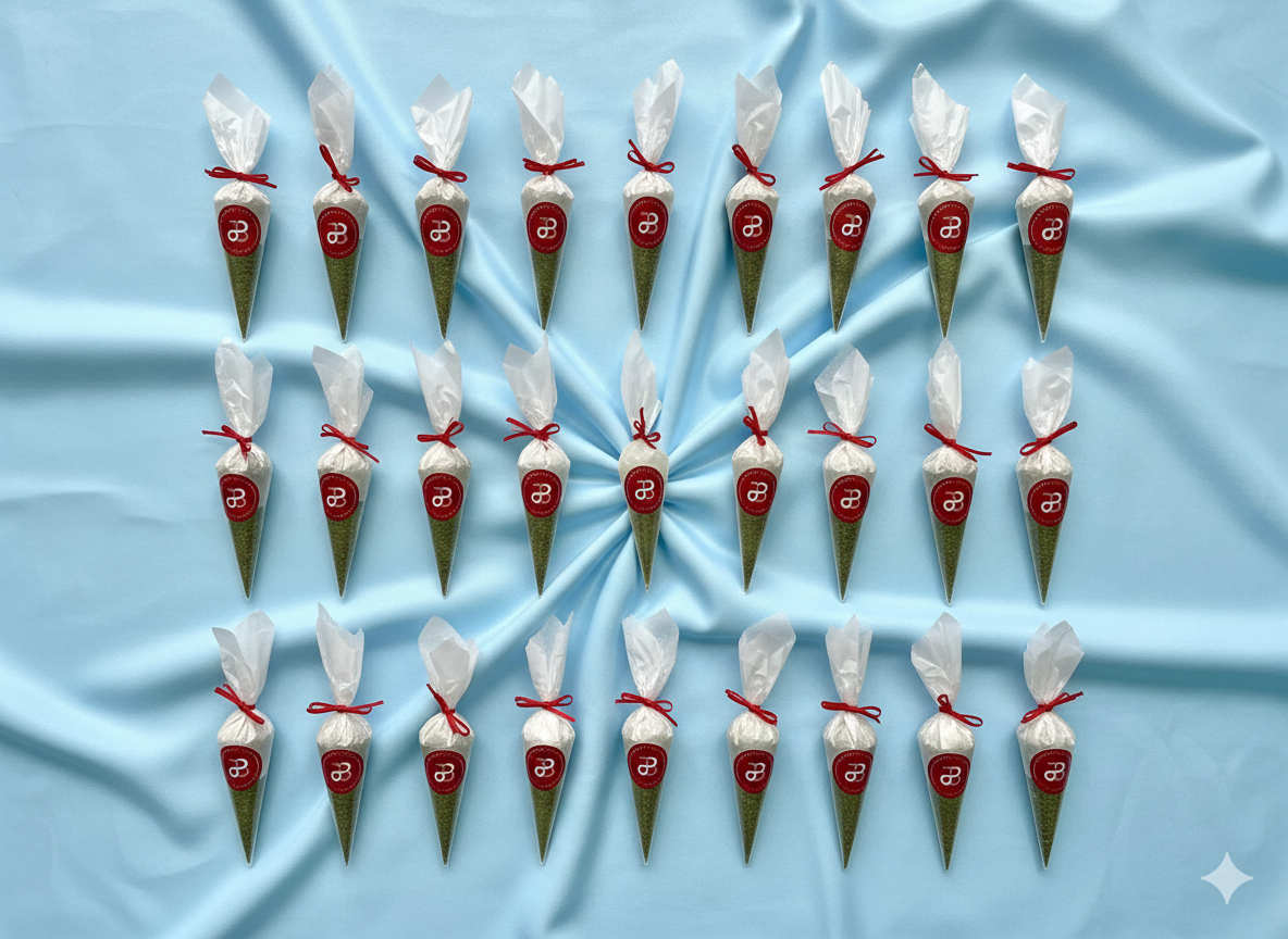 End your celebration on a refreshing note with our beautifully packed wedding favour mukhwas cone — a perfect blend of tradition and taste. Thoughtfully presented in a cone-shaped pouch, tied with a red ribbon, this treat adds the sweetest finishing touch to any festive occasion.